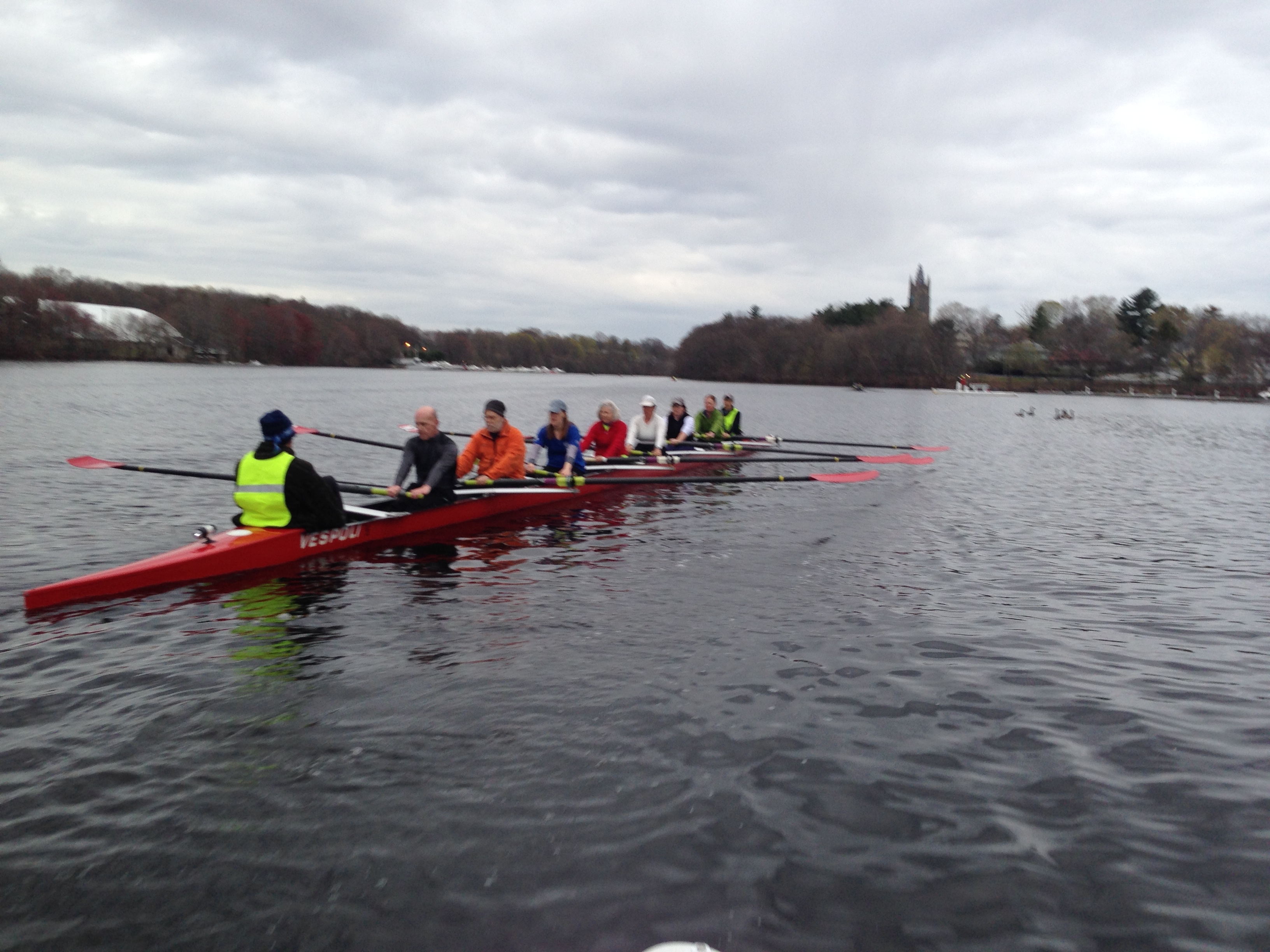 As a quick review for novice rowers, race pace over 2,000m will be at a stroke rating of 28 − 32 strokes per minute and a consistent 500m split. The lower the split the better. Good things to focus on include breathing, getting the knees down, driving through the heels, quick hands, and being smooth. I also like to coach a smile or grin 10 just to take yourself out of your body for a second, have some fun, and then refocus with a fresh mindset. Focus on one positive thought for 10 consecutive strokes and you’ll be that much closer to your goal.